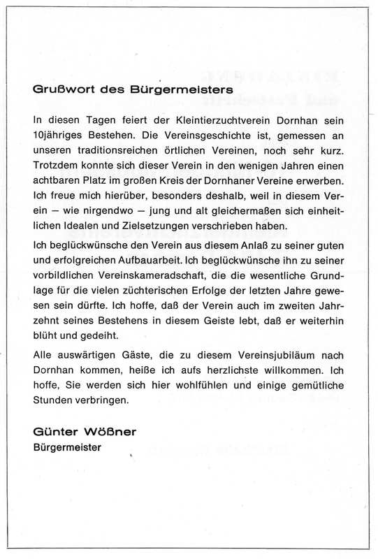 Anbei finden Sie die Festschrift zum 10-jährigen Jubiläum des Kleintierzuchtvereins Dornhan aus dem Jahre 1975.
